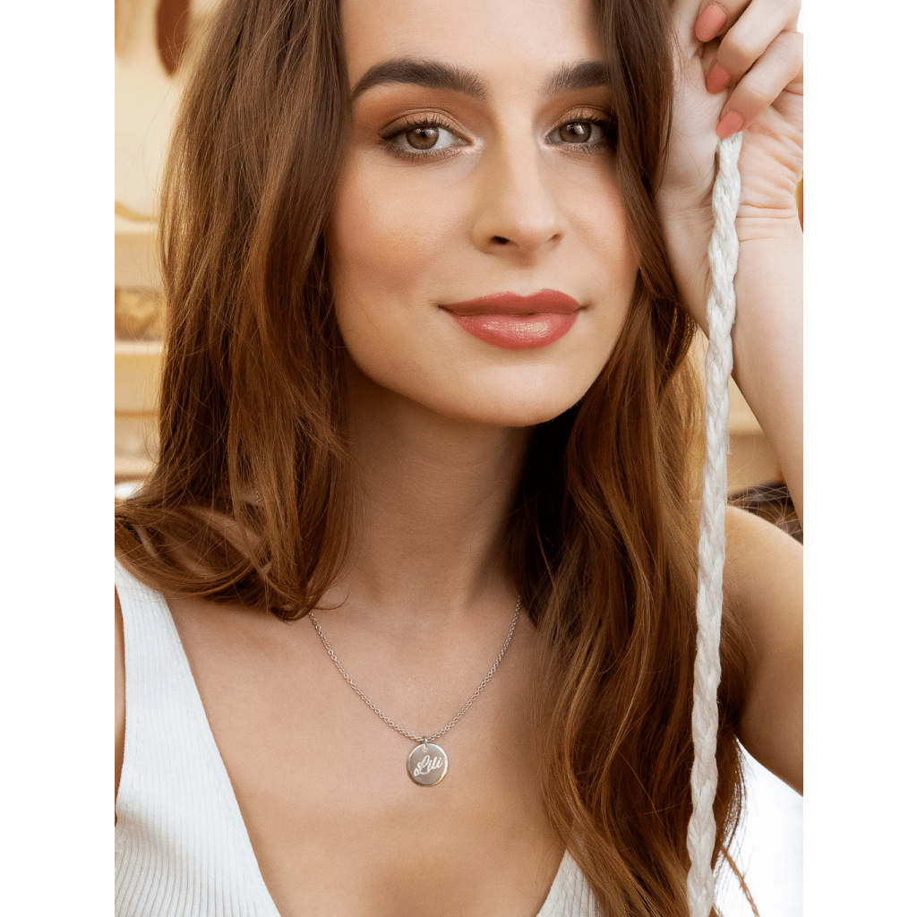 Elegantní, nadčasový a minimalistický design medailonku v kombinaci s moderním zdobným písmem rytého textu vytváří krásnou památku na celý život. Šperk, který bude uchovávat jméno vašeho dítěte, partnera nebo datum důležité životní události. Přívěsek je dodáván i s řetízkem o délce dle výběru.